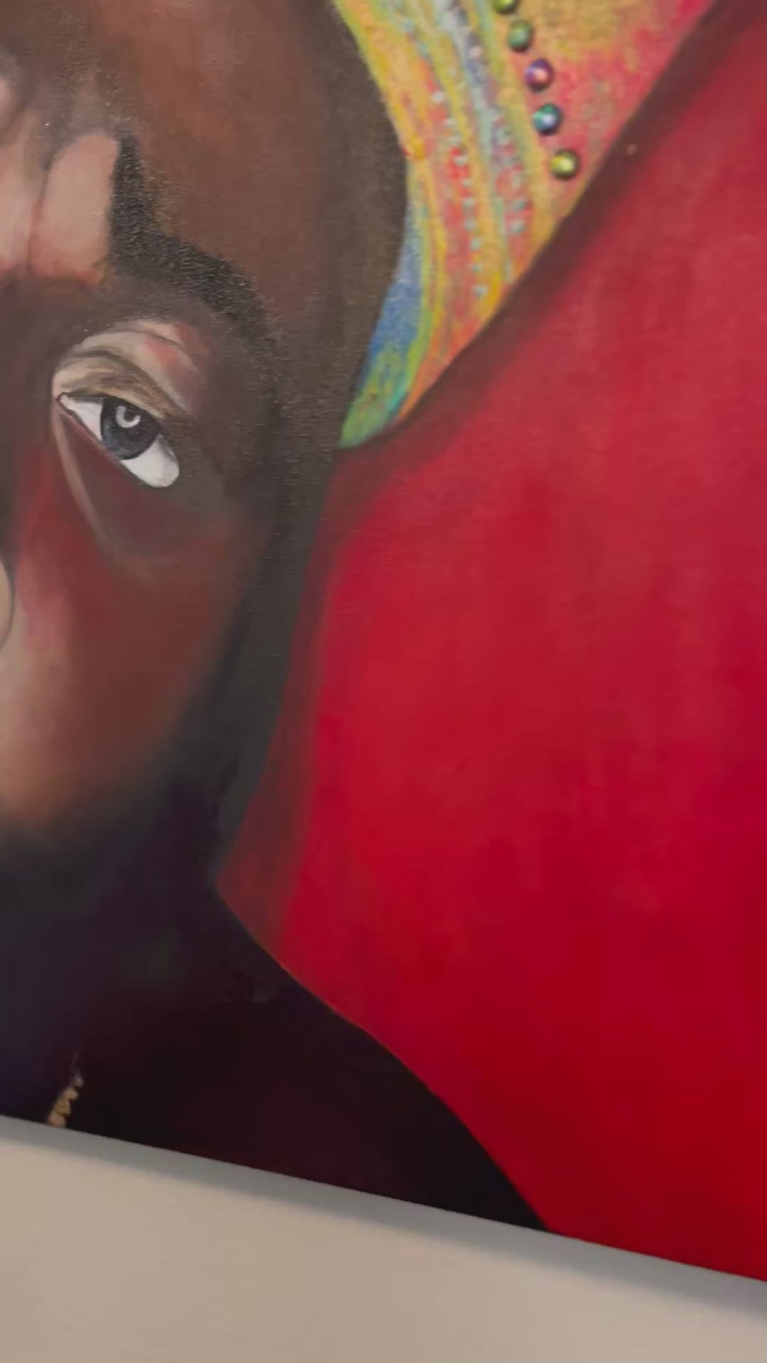 Original 36”x36” acrylic on canvas. Portrait of Notorious BIG also know as "The King of New York".