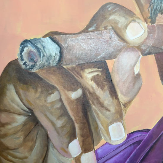 Colorful Painting of a Cuban man smoking a cigar. Acrylic on canvas